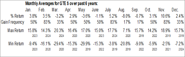 A word of caution: Only 6 years of data is available for shares of GTES, perhaps insufficient to create a seasonal profile that accurately gauges the seasonal tendencies influencing the investment. Ideally, while 20 years is preferred, at least 10 years of data is required to perform a seasonal analysis that is considered to be reliable for future seasonal periods.