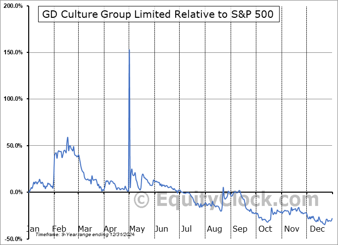 Analysis of the GD Culture Group Limited (NASD:GDC) seasonal charts above shows that a Buy Date of December 29 and a Sell Date of March 22 has resulted in a geometric average return of 9.54% above the benchmark rate of the S&P 500 Total Return Index over the past 8 years. This seasonal timeframe has shown positive results compared to the benchmark in 6 of those periods. This is a good rate of success and the return strongly outperforms the relative buy-and-hold performance of the stock over the past 8 years by an average of 59.55% per year.