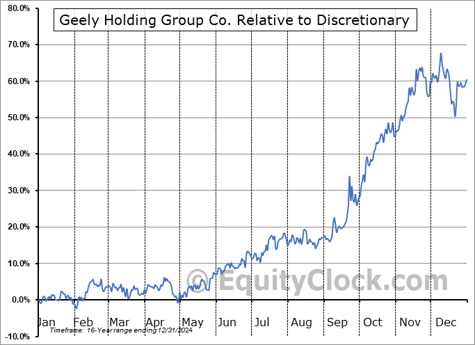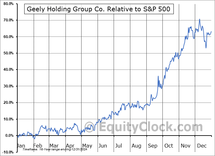 Analysis of the Geely Holding Group Co. (OTCMKT:GELYF) seasonal charts above shows that a Buy Date of July 22 and a Sell Date of November 5 has resulted in a geometric average return of 16.59% above the benchmark rate of the S&P 500 Total Return Index over the past 16 years. This seasonal timeframe has shown positive results compared to the benchmark in 13 of those periods. This is a very good rate of success and the return strongly outperforms the relative buy-and-hold performance of the stock over the past 16 years by an average of 6.05% per year.