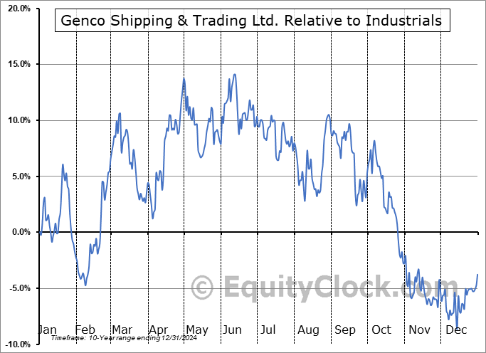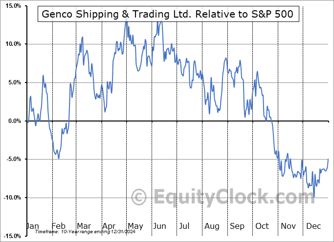 Analysis of the Genco Shipping & Trading Ltd. (NYSE:GNK) seasonal charts above shows that a Buy Date of February 10 and a Sell Date of April 30 has resulted in a geometric average return of 15.66% above the benchmark rate of the S&P 500 Total Return Index over the past 10 years. This seasonal timeframe has shown positive results compared to the benchmark in 7 of those periods. This is a good rate of success and the return strongly outperforms the relative buy-and-hold performance of the stock over the past 10 years by an average of 42.57% per year.