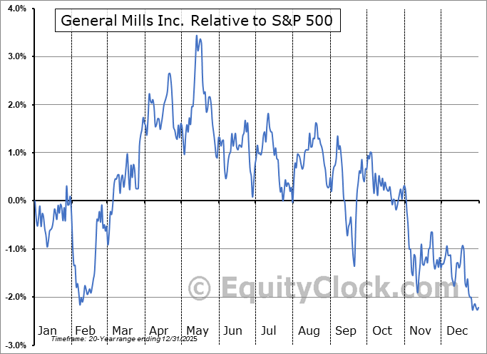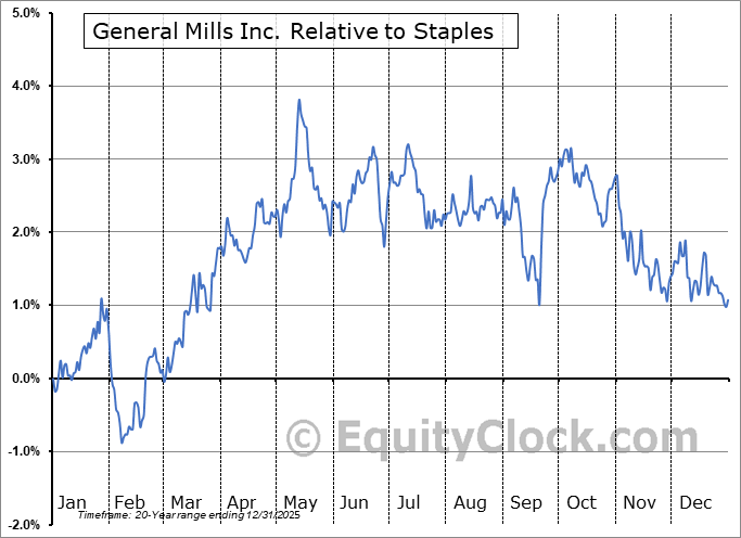 The seasonal timeframe correlates Poorly with the period of seasonal strength for the Consumer Staples sector, which runs from April 25 to November 23. The seasonal chart for the broad sector is available via the following link: Consumer Staples Sector Seasonal Chart.
