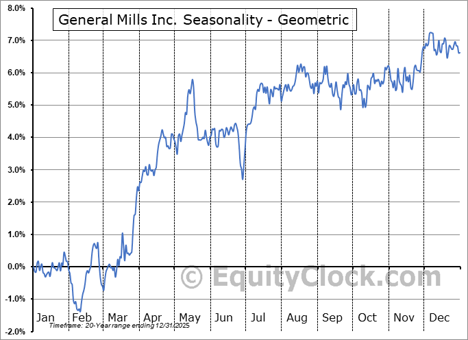 Analysis of the General Mills Inc. (NYSE:GIS) seasonal charts above shows that a Buy Date of February 7 and a Sell Date of May 18 has resulted in a geometric average return of 3.43% above the benchmark rate of the S&P 500 Total Return Index over the past 20 years. This seasonal timeframe has shown positive results compared to the benchmark in 16 of those periods. This is a very good rate of success and the return strongly outperforms the relative buy-and-hold performance of the stock over the past 20 years by an average of 7.22% per year.