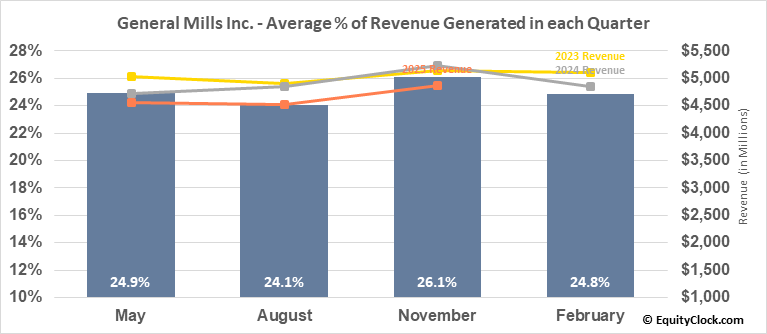 General Mills, Inc. engages in the manufacture and marketing of branded consumer foods sold through retail stores. Its product categories include snacks, ready-to-eat cereal, convenient meals, pet food, refrigerated and frozen dough, baking mixes and ingredients, yogurt, and ice cream. It operates through the following segments: North America Retail, International, North America Pet, and North America Foodservice. The North America Retail segment includes grocery stores, mass merchandisers, membership stores, natural food chains, drug, dollar and discount chains, convenience stores, and e-commerce grocery providers. The International segment refers to the retail and foodservice businesses outside of the US and Canada. The North America Pet segment includes pet food products sold in national pet superstore chains, e-commerce retailers, grocery stores, regional pet store chains, mass merchandisers, and veterinary clinics and hospitals. The North America Foodservice segment offers ready-to-eat cereals, snacks, refrigerated yogurt, frozen meals, unbaked and fully baked frozen dough products, baking mixes, and bakery flour. The company was founded by Cadwallader C. Washburn on June 20, 1928 and is headquartered in Minneapolis, MN.