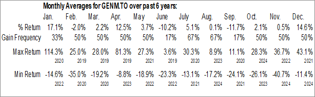 To download GENM.TO seasonal chart data, please log in or Subscribe.