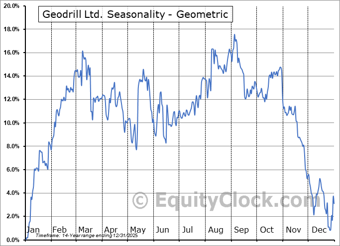 Analysis of the Geodrill Ltd. (OTCMKT:GEODF) seasonal charts above shows that a Buy Date of December 7 and a Sell Date of March 1 has resulted in a geometric average return of 12.6% above the benchmark rate of the S&P 500 Total Return Index over the past 14 years. This seasonal timeframe has shown positive results compared to the benchmark in 11 of those periods. This is a good rate of success and the return strongly outperforms the relative buy-and-hold performance of the stock over the past 14 years by an average of 22.7% per year.