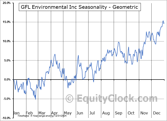 A word of caution: Only 4 years of data is available for shares of GFL.TO, perhaps insufficient to create a seasonal profile that accurately gauges the seasonal tendencies influencing the investment. Ideally, while 20 years is preferred, at least 10 years of data is required to perform a seasonal analysis that is considered to be reliable for future seasonal periods.
