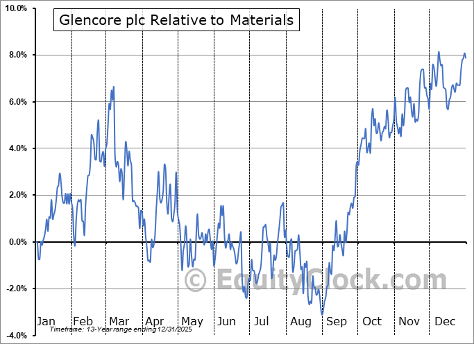 Analysis of the Glencore plc (OTCMKT:GLNCY) seasonal charts above shows that a Buy Date of August 20 and a Sell Date of January 10 has resulted in a geometric average return of 3.79% above the benchmark rate of the S&P 500 Total Return Index over the past 12 years. This seasonal timeframe has shown positive results compared to the benchmark in 10 of those periods. This is a very good rate of success and the return strongly outperforms the relative buy-and-hold performance of the stock over the past 12 years by an average of 15.16% per year.