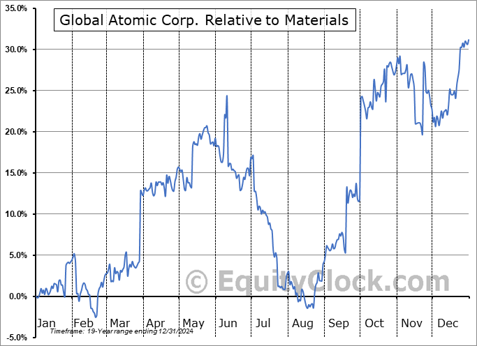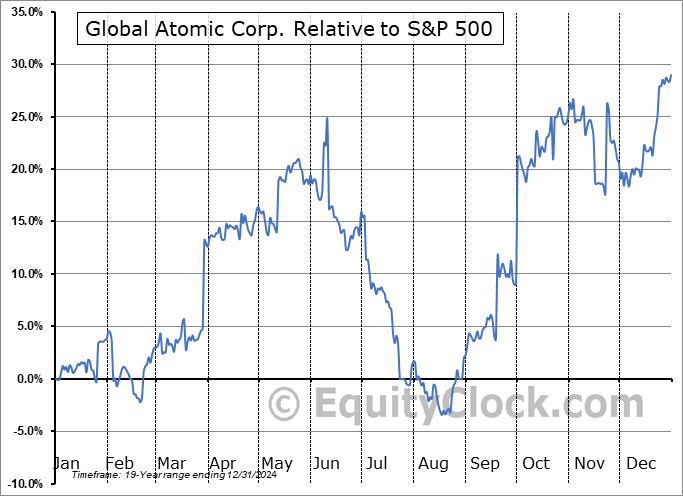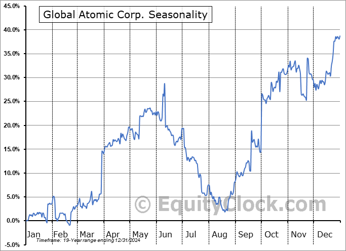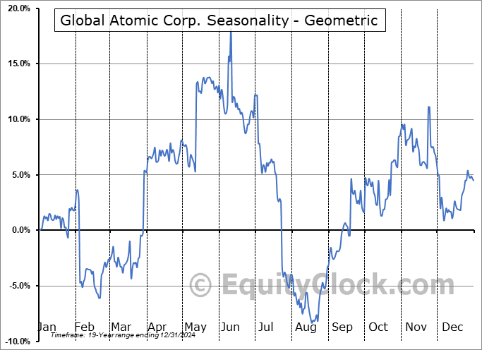 Analysis of the Global Atomic Corp. (OTCMKT:GLATF) seasonal charts above shows that a Buy Date of February 20 and a Sell Date of June 8 has resulted in a geometric average return of 19.28% above the benchmark rate of the S&P 500 Total Return Index over the past 19 years. This seasonal timeframe has shown positive results compared to the benchmark in 13 of those periods. This is a good rate of success and the return strongly outperforms the relative buy-and-hold performance of the stock over the past 19 years by an average of 24.61% per year.