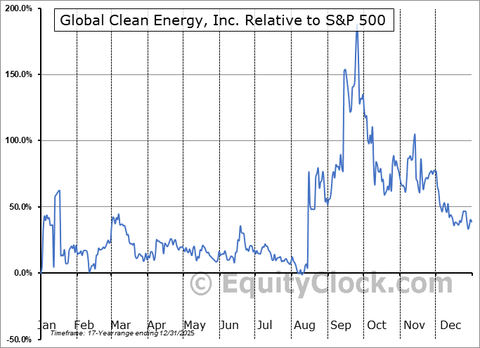 Analysis of the Global Clean Energy, Inc. (OTCMKT:GCEI) seasonal charts above shows that a Buy Date of December 16 and a Sell Date of March 7 has resulted in a geometric average return of 32.3% above the benchmark rate of the S&P 500 Total Return Index over the past 15 years. This seasonal timeframe has shown positive results compared to the benchmark in 11 of those periods. This is a good rate of success and the return strongly outperforms the relative buy-and-hold performance of the stock over the past 15 years by an average of 49.3% per year.