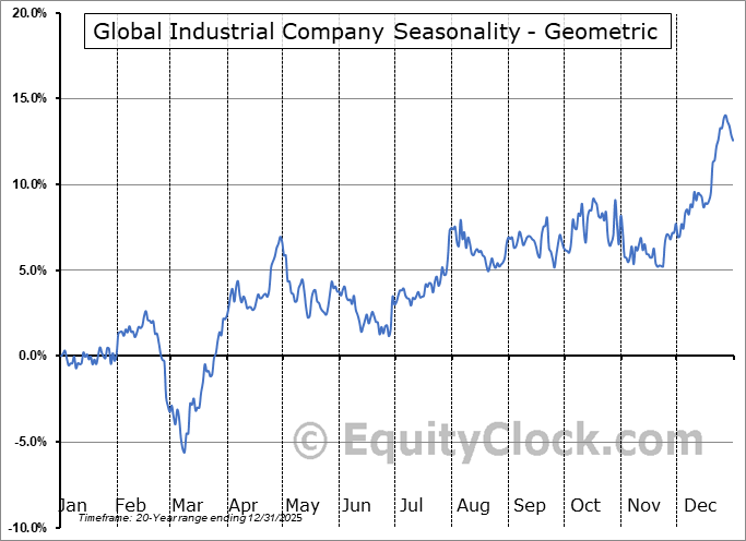 The seasonal timeframe is Inline with the period of seasonal strength for the Industrials sector, which runs from October 29 to May 10. The seasonal chart for the broad sector is available via the following link: Industrials Sector Seasonal Chart.
