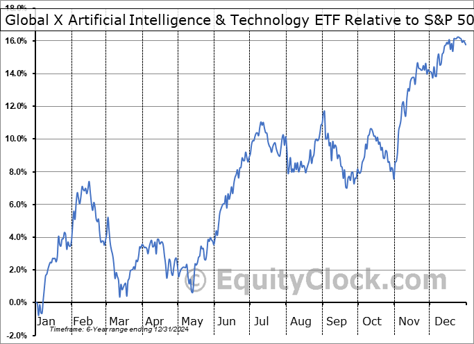 Analysis of the Global X Artificial Intelligence & Technology ETF (NASD:AIQ) seasonal charts above shows that a Buy Date of October 29 and a Sell Date of February 15 has resulted in a geometric average return of 5.7% above the benchmark rate of the S&P 500 Total Return Index over the past 6 years. This seasonal timeframe has shown positive results compared to the benchmark in 5 of those periods. This is a very good rate of success and the return strongly outperforms the relative buy-and-hold performance of the stock over the past 6 years by an average of 2.88% per year.