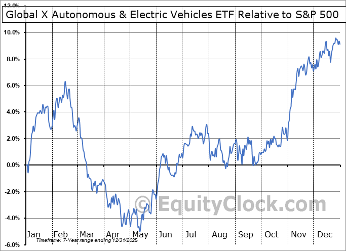 Analysis of the Global X Autonomous & Electric Vehicles ETF (NASD:DRIV) seasonal charts above shows that a Buy Date of October 24 and a Sell Date of February 15 has resulted in a geometric average return of 6.53% above the benchmark rate of the S&P 500 Total Return Index over the past 6 years. This seasonal timeframe has shown positive results compared to the benchmark in 5 of those periods. This is a very good rate of success and the return strongly outperforms the relative buy-and-hold performance of the stock over the past 6 years by an average of 9.81% per year.