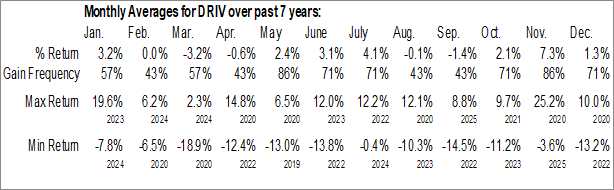To download DRIV seasonal chart data, please log in or Subscribe.