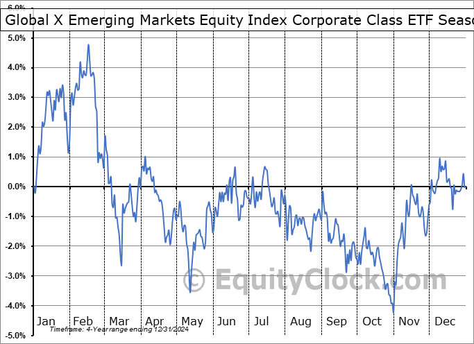 Global X Emerging Markets Equity Index Corporate Class ETF (TSE:HXEM.TO) Seasonal Chart