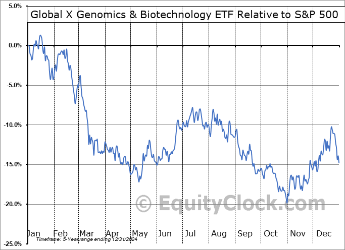 Analysis of the Global X Genomics & Biotechnology ETF (NASD:GNOM) seasonal charts above shows that a Buy Date of May 10 and a Sell Date of August 4 has resulted in a geometric average return of 5.46% above the benchmark rate of the S&P 500 Total Return Index over the past 5 years. This seasonal timeframe has shown positive results compared to the benchmark in 4 of those periods. This is a very good rate of success and the return strongly outperforms the relative buy-and-hold performance of the stock over the past 5 years by an average of 25.76% per year.
