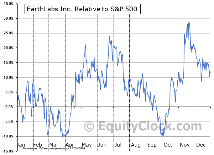 Analysis of the EarthLabs Inc. (TSXV:SPOT.V) seasonal charts above shows that a Buy Date of October 4 and a Sell Date of January 4 has resulted in a geometric average return of 15.77% above the benchmark rate of the S&P 500 Total Return Index over the past 7 years. This seasonal timeframe has shown positive results compared to the benchmark in 6 of those periods. This is a very good rate of success and the return strongly outperforms the relative buy-and-hold performance of the stock over the past 7 years by an average of 41.52% per year.