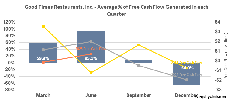 Good Times Restaurants, Inc. (NASD:GTIM) Seasonal Chart