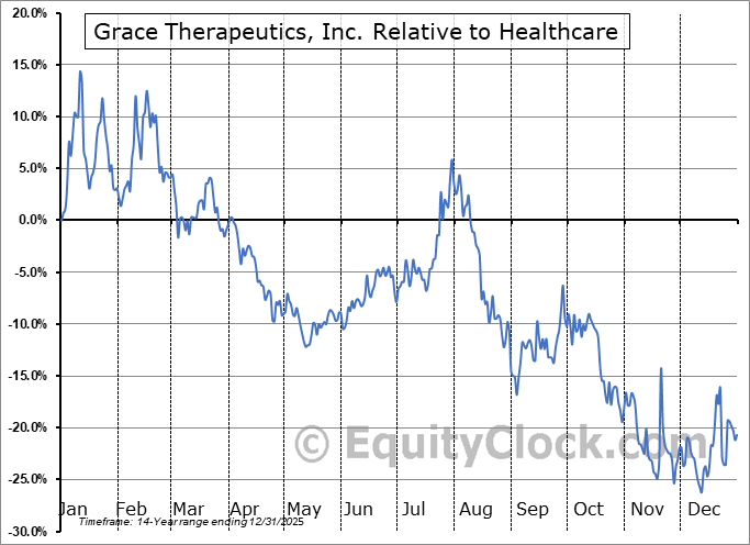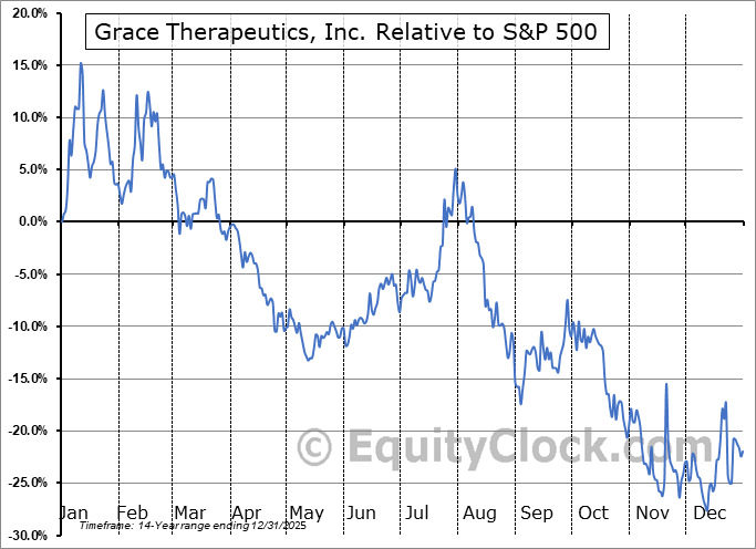 Analysis of the Grace Therapeutics, Inc. (NASD:GRCE) seasonal charts above shows that a Buy Date of November 27 and a Sell Date of February 17 has resulted in a geometric average return of 1.06% above the benchmark rate of the S&P 500 Total Return Index over the past 14 years. This seasonal timeframe has shown positive results compared to the benchmark in 9 of those periods. This is a fair rate of success and the return strongly outperforms the relative buy-and-hold performance of the stock over the past 14 years by an average of 40.97% per year.