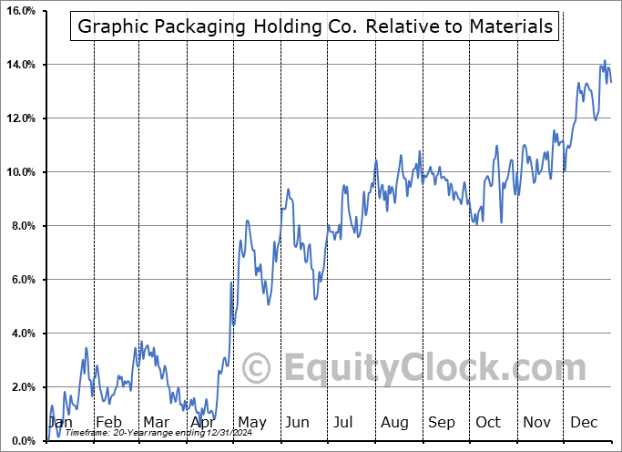 Analysis of the Graphic Packaging Holding Co. (NYSE:GPK) seasonal charts above shows that a Buy Date of December 21 and a Sell Date of April 21 has resulted in a geometric average return of 2.3% above the benchmark rate of the S&P 500 Total Return Index over the past 20 years. This seasonal timeframe has shown positive results compared to the benchmark in 17 of those periods. This is a very good rate of success and the return strongly outperforms the relative buy-and-hold performance of the stock over the past 20 years by an average of 4.42% per year.