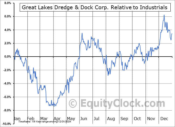 Analysis of the Great Lakes Dredge & Dock Corp. (NASD:GLDD) seasonal charts above shows that a Buy Date of April 5 and a Sell Date of June 29 has resulted in a geometric average return of 7.23% above the benchmark rate of the S&P 500 Total Return Index over the past 18 years. This seasonal timeframe has shown positive results compared to the benchmark in 14 of those periods. This is a good rate of success and the return strongly outperforms the relative buy-and-hold performance of the stock over the past 18 years by an average of 13.76% per year.
