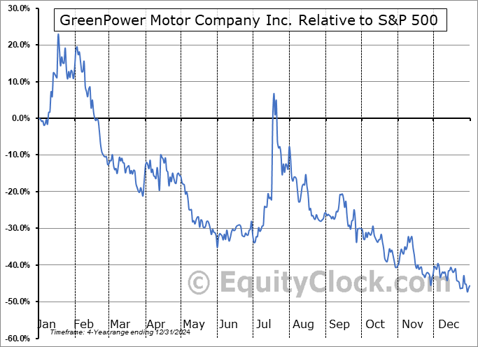 Analysis of the GreenPower Motor Company Inc. (NASD:GP) seasonal charts above shows that a Buy Date of October 22 and a Sell Date of January 13 has resulted in a geometric average return of 17.68% above the benchmark rate of the S&P 500 Total Return Index over the past 4 years. This seasonal timeframe has shown positive results compared to the benchmark in 2 of those periods. This is a poor rate of success and the return strongly outperforms the relative buy-and-hold performance of the stock over the past 4 years by an average of 82.17% per year.