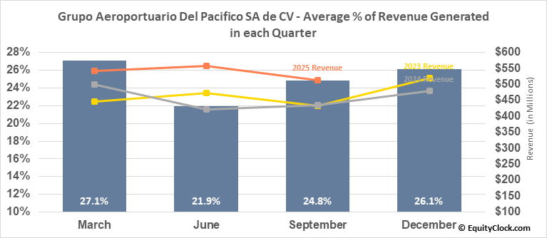 Grupo Aeroportuario Del Pacifico SA de CV (NYSE:PAC) Seasonal Chart