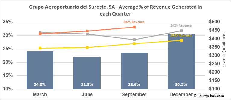 Grupo Aeroportuario del Sureste, SA (NYSE:ASR) Seasonal Chart