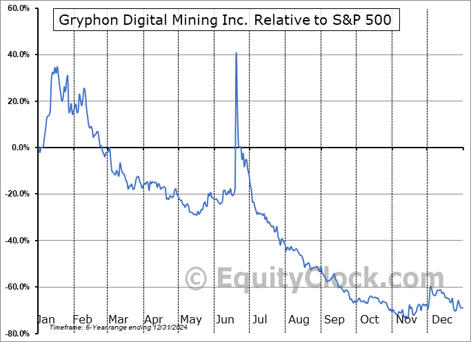 Analysis of the Gryphon Digital Mining Inc. (NASD:GRYP) seasonal charts above shows that a Buy Date of November 14 and a Sell Date of February 9 has resulted in a geometric average return of 12.95% above the benchmark rate of the S&P 500 Total Return Index over the past 6 years. This seasonal timeframe has shown positive results compared to the benchmark in 4 of those periods. This is a good rate of success and the return strongly outperforms the relative buy-and-hold performance of the stock over the past 6 years by an average of 112.95% per year.