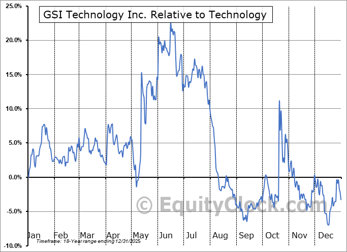 Analysis of the GSI Technology Inc. (NASD:GSIT) seasonal charts above shows that a Buy Date of December 14 and a Sell Date of April 3 has resulted in a geometric average return of 8.15% above the benchmark rate of the S&P 500 Total Return Index over the past 17 years. This seasonal timeframe has shown positive results compared to the benchmark in 13 of those periods. This is a good rate of success and the return strongly outperforms the relative buy-and-hold performance of the stock over the past 17 years by an average of 17.96% per year.
