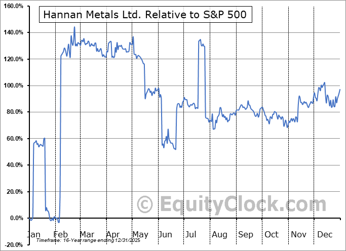 Analysis of the Hannan Metals Ltd. (OTCMKT:HANNF) seasonal charts above shows that a Buy Date of December 22 and a Sell Date of March 16 has resulted in a geometric average return of 75.62% above the benchmark rate of the S&P 500 Total Return Index over the past 16 years. This seasonal timeframe has shown positive results compared to the benchmark in 14 of those periods. This is a very good rate of success and the return strongly outperforms the relative buy-and-hold performance of the stock over the past 16 years by an average of 74.84% per year.