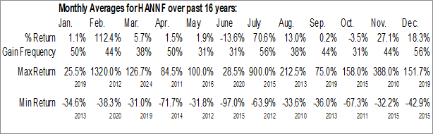 Hannan Metals Ltd. (OTCMKT:HANNF) Seasonal Chart