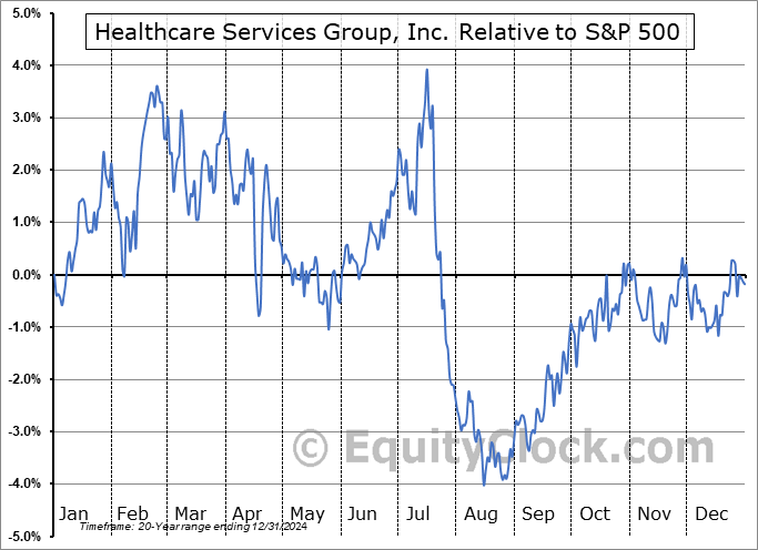 Analysis of the Healthcare Services Group, Inc. (NASD:HCSG) seasonal charts above shows that a Buy Date of December 17 and a Sell Date of April 3 has resulted in a geometric average return of 1.99% above the benchmark rate of the S&P 500 Total Return Index over the past 20 years. This seasonal timeframe has shown positive results compared to the benchmark in 18 of those periods. This is an excellent rate of success and the return strongly outperforms the relative buy-and-hold performance of the stock over the past 20 years by an average of 5.69% per year.
