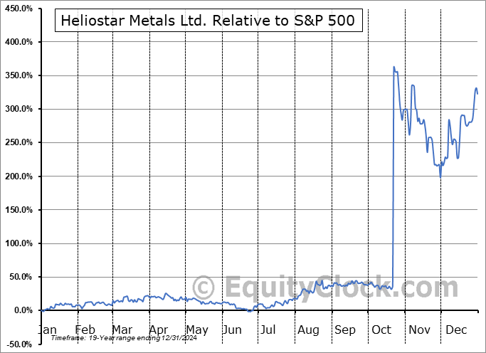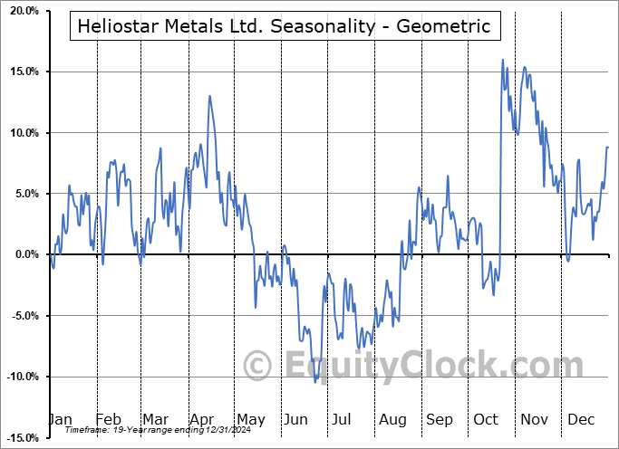 Analysis of the Heliostar Metals Ltd. (OTCMKT:HSTXF) seasonal charts above shows that a Buy Date of December 5 and a Sell Date of February 24 has resulted in a geometric average return of 9.45% above the benchmark rate of the S&P 500 Total Return Index over the past 19 years. This seasonal timeframe has shown positive results compared to the benchmark in 13 of those periods. This is a good rate of success and the return strongly outperforms the relative buy-and-hold performance of the stock over the past 19 years by an average of 13.86% per year.
