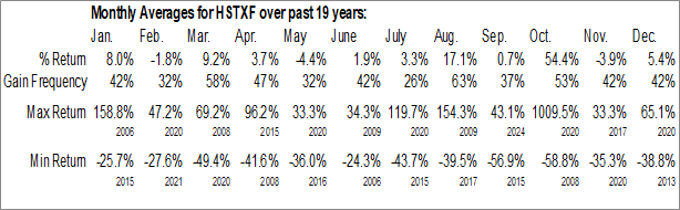 Heliostar Metals Ltd. (OTCMKT:HSTXF) Seasonal Chart