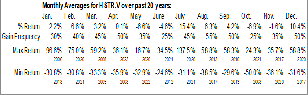 To download HSTR.V seasonal chart data, please log in or Subscribe.