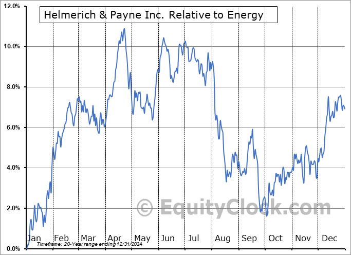 The seasonal timeframe correlates Poorly with the period of seasonal strength for the Energy sector, which runs from January 21 to May 9. The seasonal chart for the broad sector is available via the following link: Energy Sector Seasonal Chart.