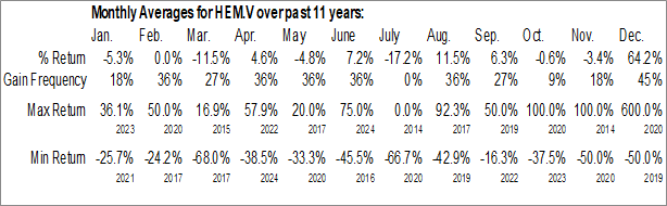 To download HEM.V seasonal chart data, please log in or Subscribe.