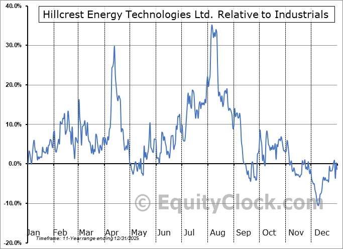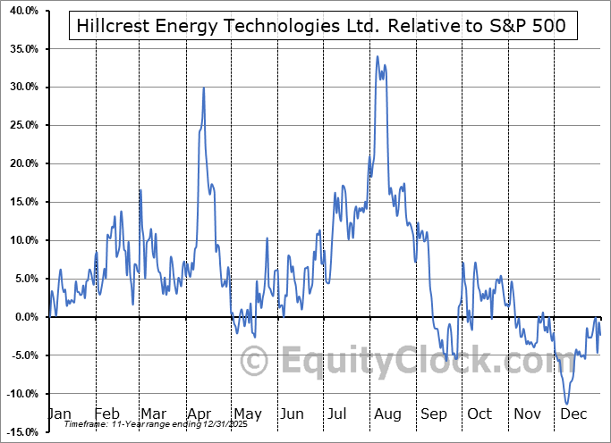Analysis of the Hillcrest Energy Technologies Ltd. (OTCMKT:HLRTF) seasonal charts above shows that a Buy Date of May 2 and a Sell Date of July 29 has resulted in a geometric average return of 22.63% above the benchmark rate of the S&P 500 Total Return Index over the past 10 years. This seasonal timeframe has shown positive results compared to the benchmark in 8 of those periods. This is a very good rate of success and the return strongly outperforms the relative buy-and-hold performance of the stock over the past 10 years by an average of 47.61% per year.