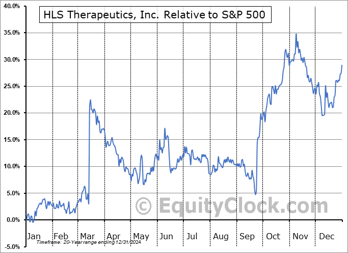 Analysis of the HLS Therapeutics, Inc. (TSE:HLS.TO) seasonal charts above shows that a Buy Date of December 15 and a Sell Date of March 16 has resulted in a geometric average return of 14.31% above the benchmark rate of the S&P 500 Total Return Index over the past 20 years. This seasonal timeframe has shown positive results compared to the benchmark in 16 of those periods. This is a very good rate of success and the return strongly outperforms the relative buy-and-hold performance of the stock over the past 20 years by an average of 18.65% per year.