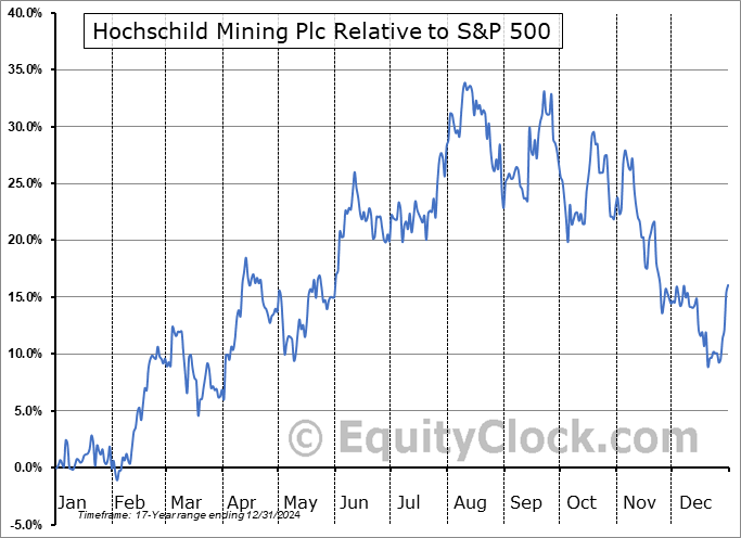 Analysis of the Hochschild Mining Plc (OTCMKT:HCHDF) seasonal charts above shows that a Buy Date of December 16 and a Sell Date of March 7 has resulted in a geometric average return of 11.13% above the benchmark rate of the S&P 500 Total Return Index over the past 17 years. This seasonal timeframe has shown positive results compared to the benchmark in 13 of those periods. This is a good rate of success and the return strongly outperforms the relative buy-and-hold performance of the stock over the past 17 years by an average of 26.63% per year.