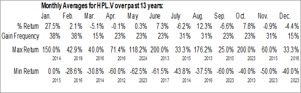 To download HPL.V seasonal chart data, please log in or Subscribe.