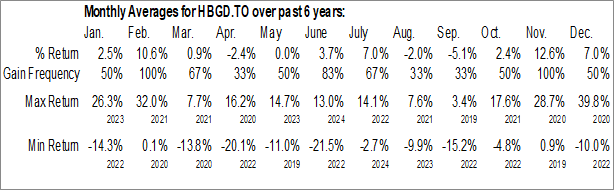 To download HBGD.TO seasonal chart data, please log in or Subscribe.