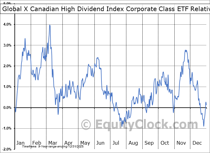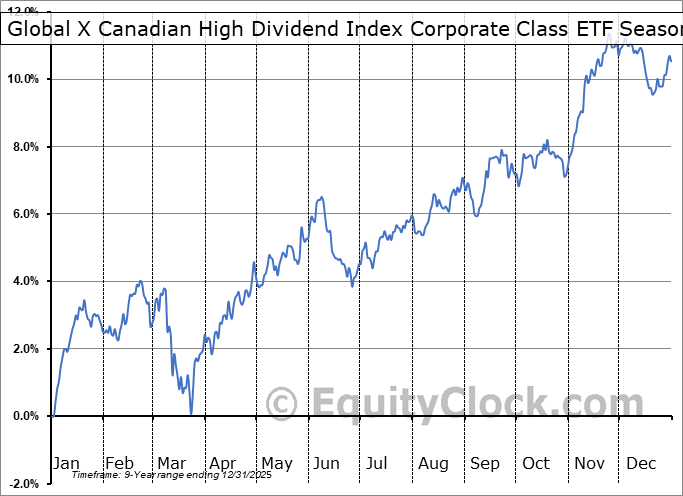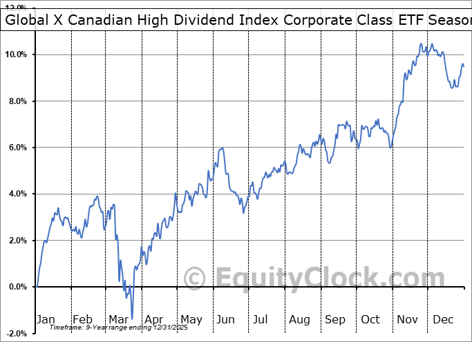 Global X Canadian High Dividend Index Corporate Class ETF (TSE:HXH.TO) Seasonal Chart