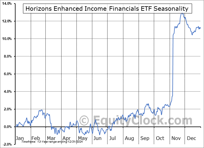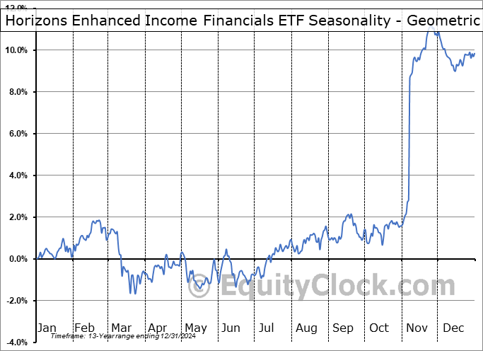 Horizons Enhanced Income Financials ETF (TSE:HEF.TO) Seasonal Chart