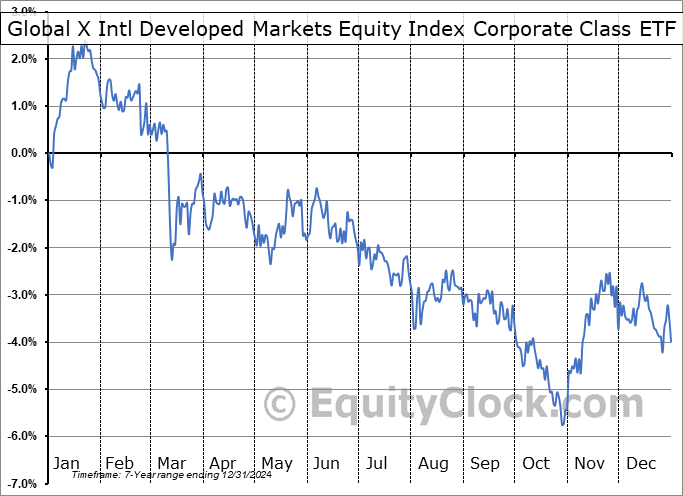 Analysis of the Global X Intl Developed Markets Equity Index Corporate Class ETF (TSE:HXDM.TO) seasonal charts above shows that a Buy Date of September 2 and a Sell Date of November 23 has resulted in a geometric average return of 0.94% above the benchmark rate of the S&P 500 Total Return Index over the past 6 years. This seasonal timeframe has shown positive results compared to the benchmark in 5 of those periods. This is a very good rate of success and the return strongly outperforms the relative buy-and-hold performance of the stock over the past 6 years by an average of 9.46% per year.