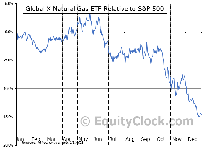 Analysis of the Global X Natural Gas ETF (TSE:HUN.TO) seasonal charts above shows that a Buy Date of February 24 and a Sell Date of May 18 has resulted in a geometric average return of 4.79% above the benchmark rate of the S&P 500 Total Return Index over the past 15 years. This seasonal timeframe has shown positive results compared to the benchmark in 10 of those periods. This is a good rate of success and the return strongly outperforms the relative buy-and-hold performance of the stock over the past 15 years by an average of 24.74% per year.