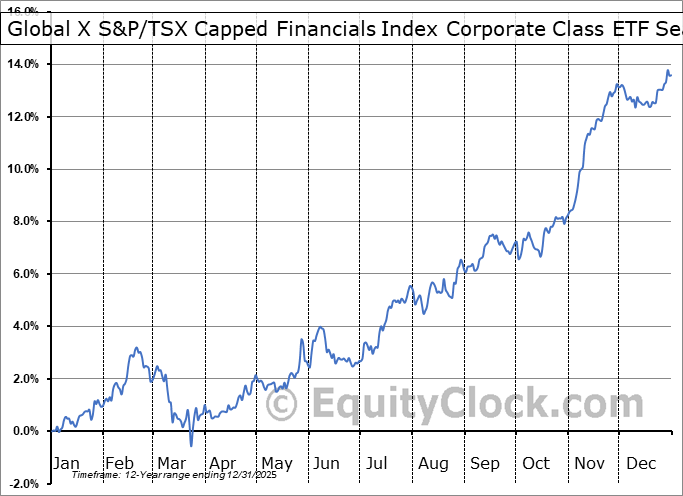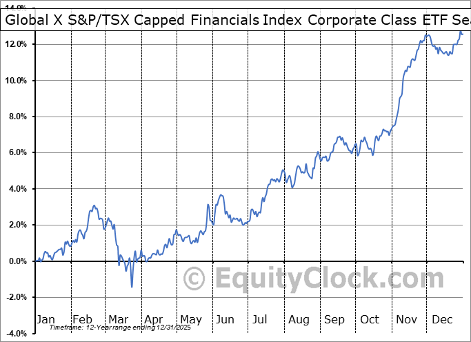 Global X S&P/TSX Capped Financials Index Corporate Class ETF (TSE:HXF.TO) Seasonal Chart