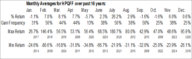 HPQ-Silicon Resources Inc. (OTCMKT:HPQFF) Seasonal Chart