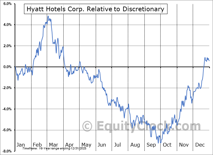 Analysis of the Hyatt Hotels Corp. (NYSE:H) seasonal charts above shows that a Buy Date of October 9 and a Sell Date of January 1 has resulted in a geometric average return of 5.91% above the benchmark rate of the S&P 500 Total Return Index over the past 14 years. This seasonal timeframe has shown positive results compared to the benchmark in 14 of those periods. This is an excellent rate of success and the return strongly outperforms the relative buy-and-hold performance of the stock over the past 14 years by an average of 7.56% per year.