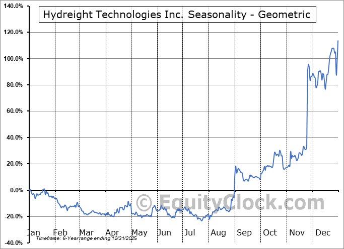 Analysis of the Hydreight Technologies Inc. (TSXV:NURS.V) seasonal charts above shows that a Buy Date of August 1 and a Sell Date of December 26 has resulted in a geometric average return of 171.9% above the benchmark rate of the S&P 500 Total Return Index over the past 5 years. This seasonal timeframe has shown positive results compared to the benchmark in 4 of those periods. This is a very good rate of success and the return strongly outperforms the relative buy-and-hold performance of the stock over the past 5 years by an average of 88.21% per year.